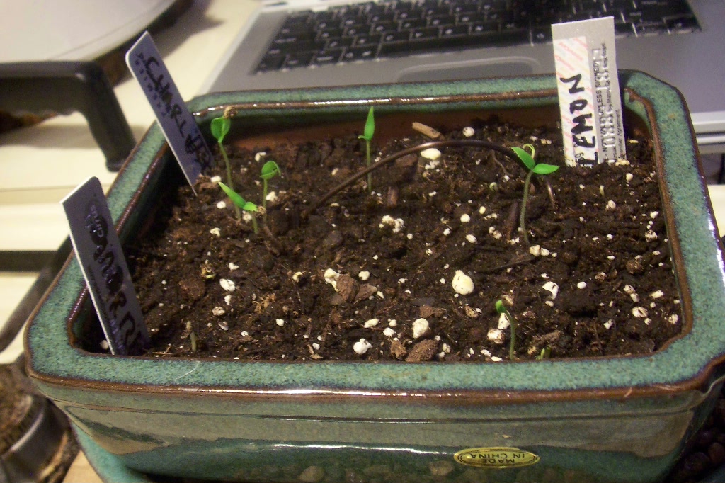 Why not the "chilicam" you ask? Well, someone else is already using that name. I could use it myself, but I'd hate to have to sue them for implementing my idea before me. Oh- and fouling up my google results (because these things are sought after right?) Anyway, I thought I'd try growing some chili seeds I bought from Pepperjoe.com. Yes, I'm not exactly rearing them in the best medium, but i figured i'd try what i had on hand for the first batch, and then pick up what's supposed to work better ;) I already have a few shoots of two of the four types i'm trying to grow. I've got long red slims, hot lemons, 5 color marbles, and charlestons. Actually, it just occurred to me i should pick up a milder variety for pickling and eating whole. This weekend i'll find some small pots to transplant them into when the time comes. If i'm really lucky maybe i'll have some home grown chilis sometime this- Wait, how long until these things bear fruit?