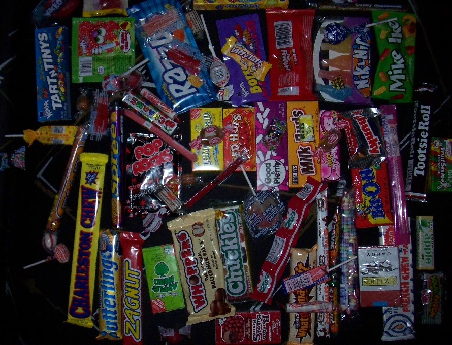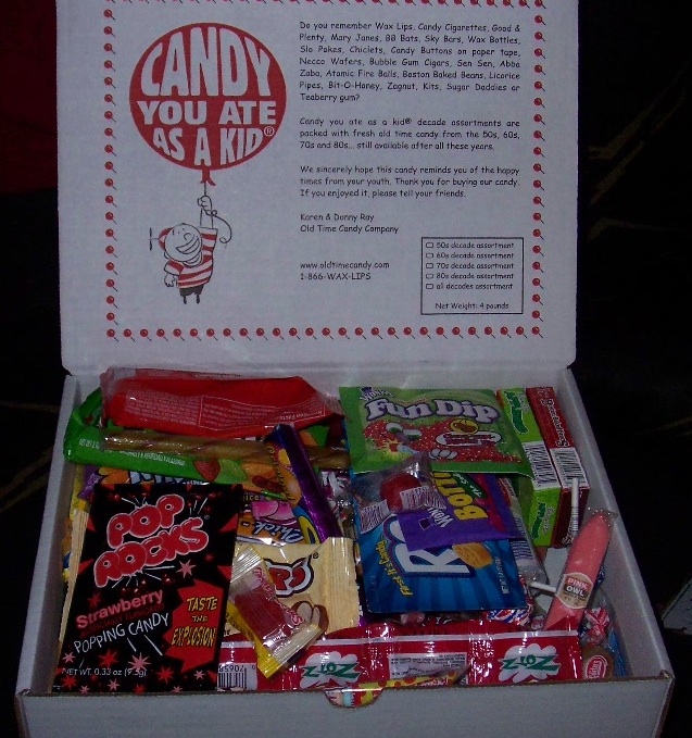 My long-lost separated at birth twin sister Jojo™ sent me a box of candy from Candy You Ate As A Kid®. There was a LOT of candy in the box! I had to lay it all out and take a pic. I've had most of this candy, some of it a long time ago- reminds me of Halloween booty from when i was... a couple decades younger. There's nothing I like more than variety when it comes to food/candy. I'll try not to finish it all in one night!